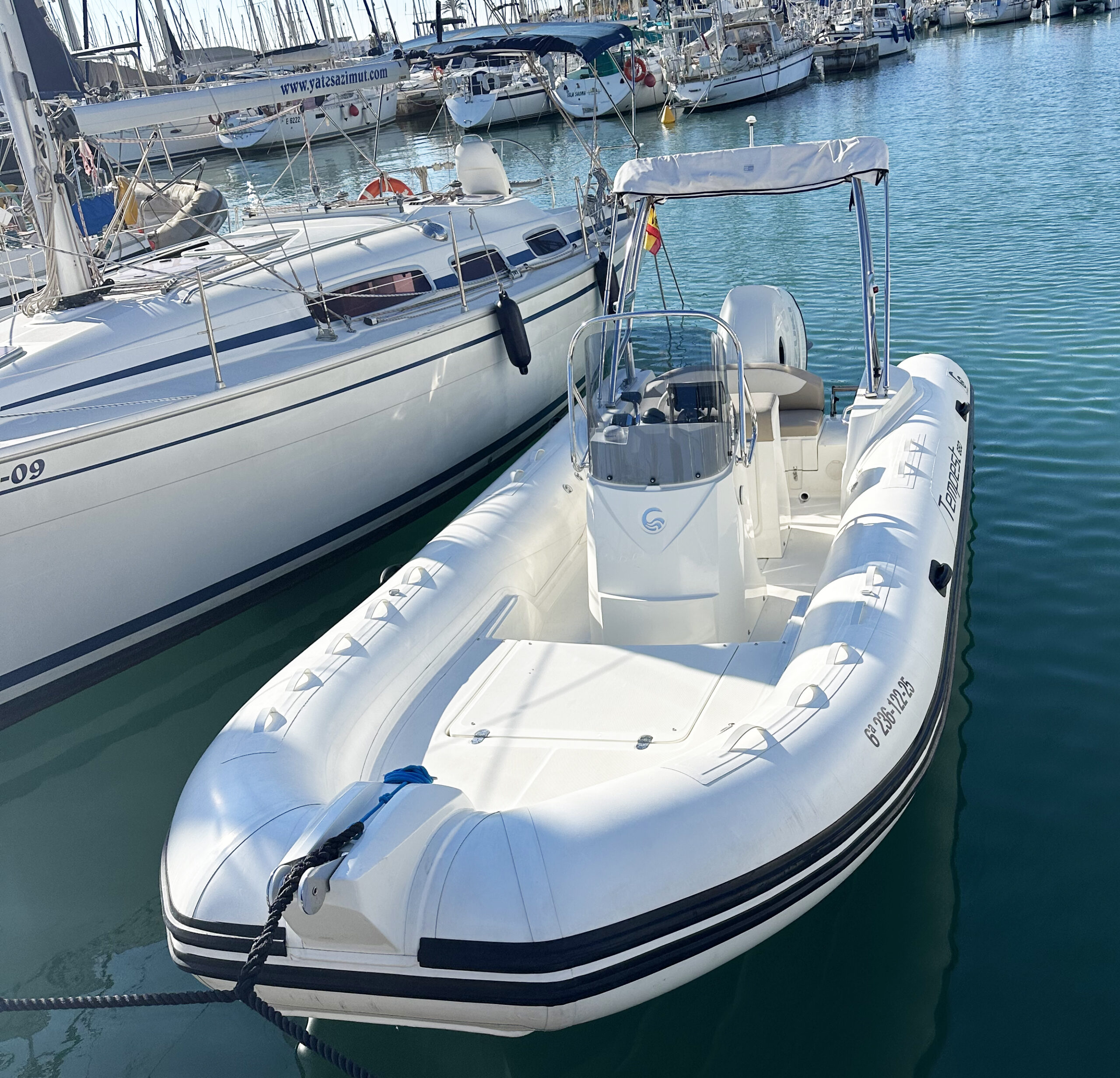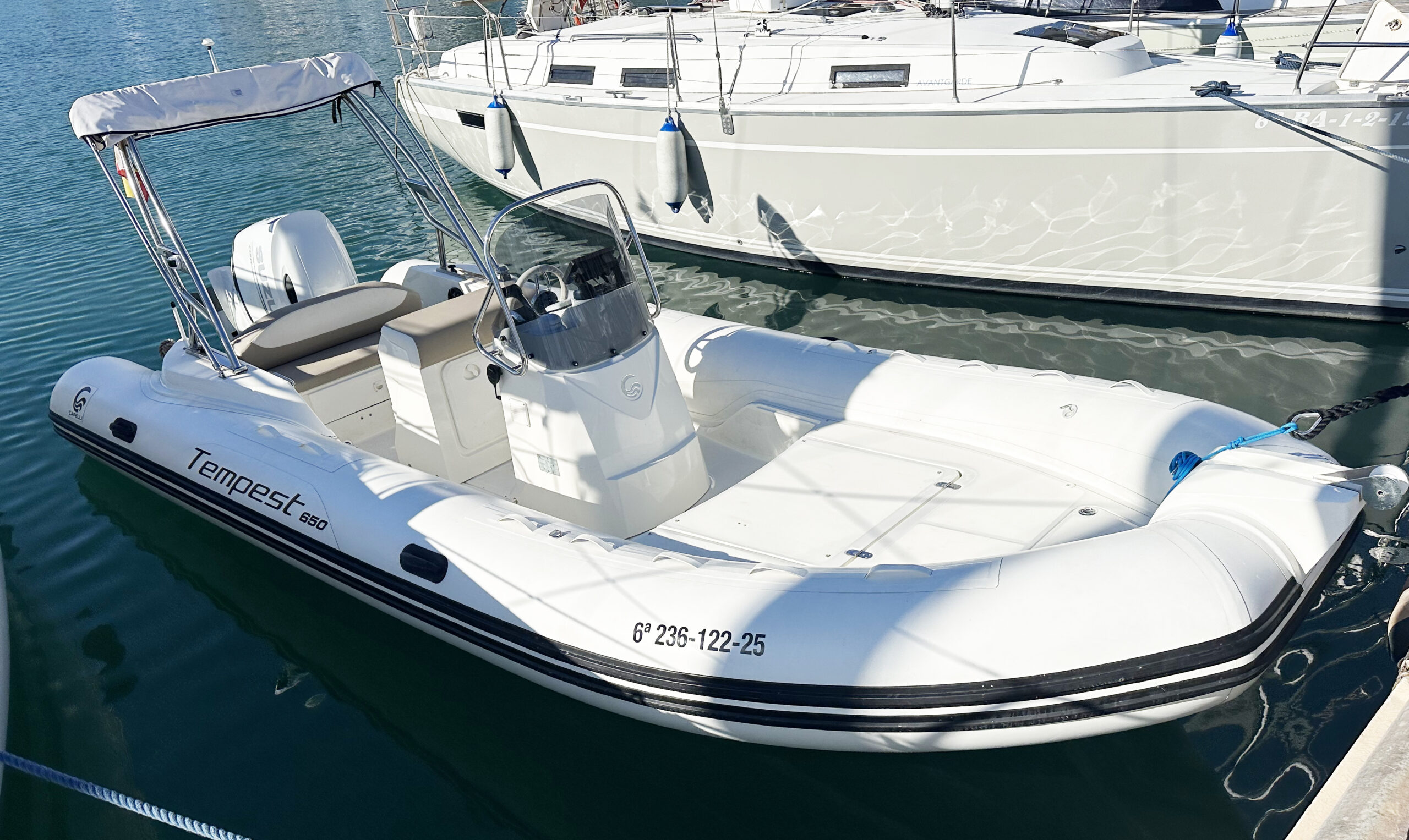 La semirrígida Capelli Tempest 650 encarna la exitosa alianza entre agilidad deportiva, versatilidad y comodidad en el mundo de las embarcaciones neumáticas. Con su diseño moderno y líneas dinámicas, este RIB ofrece una estética llamativa que combina hábilmente elegancia y rendimiento. El Tempest 650 cuenta con una cubierta bien equipada con un puesto de mando ergonómico, asientos cómodos y una práctica plataforma de popa para actividades acuáticas.