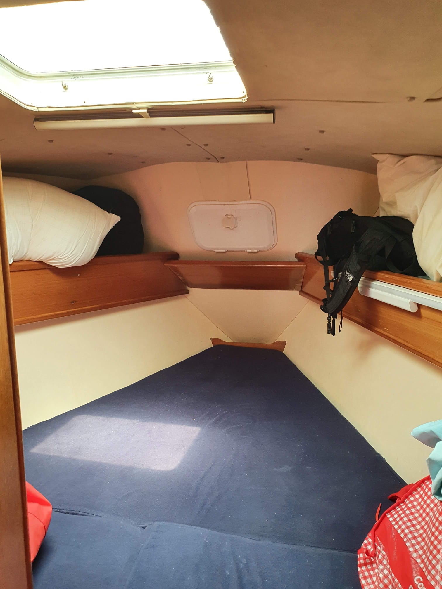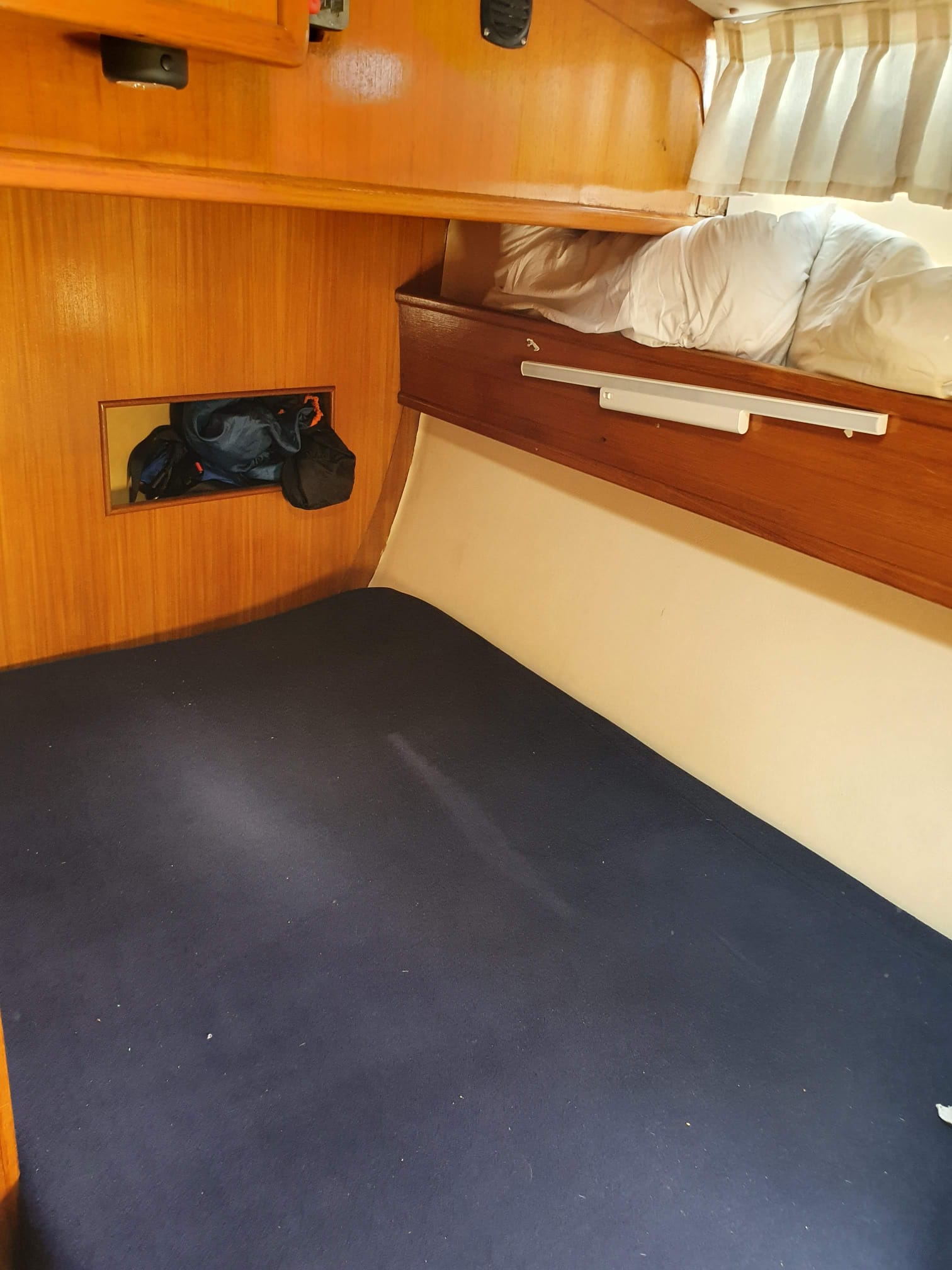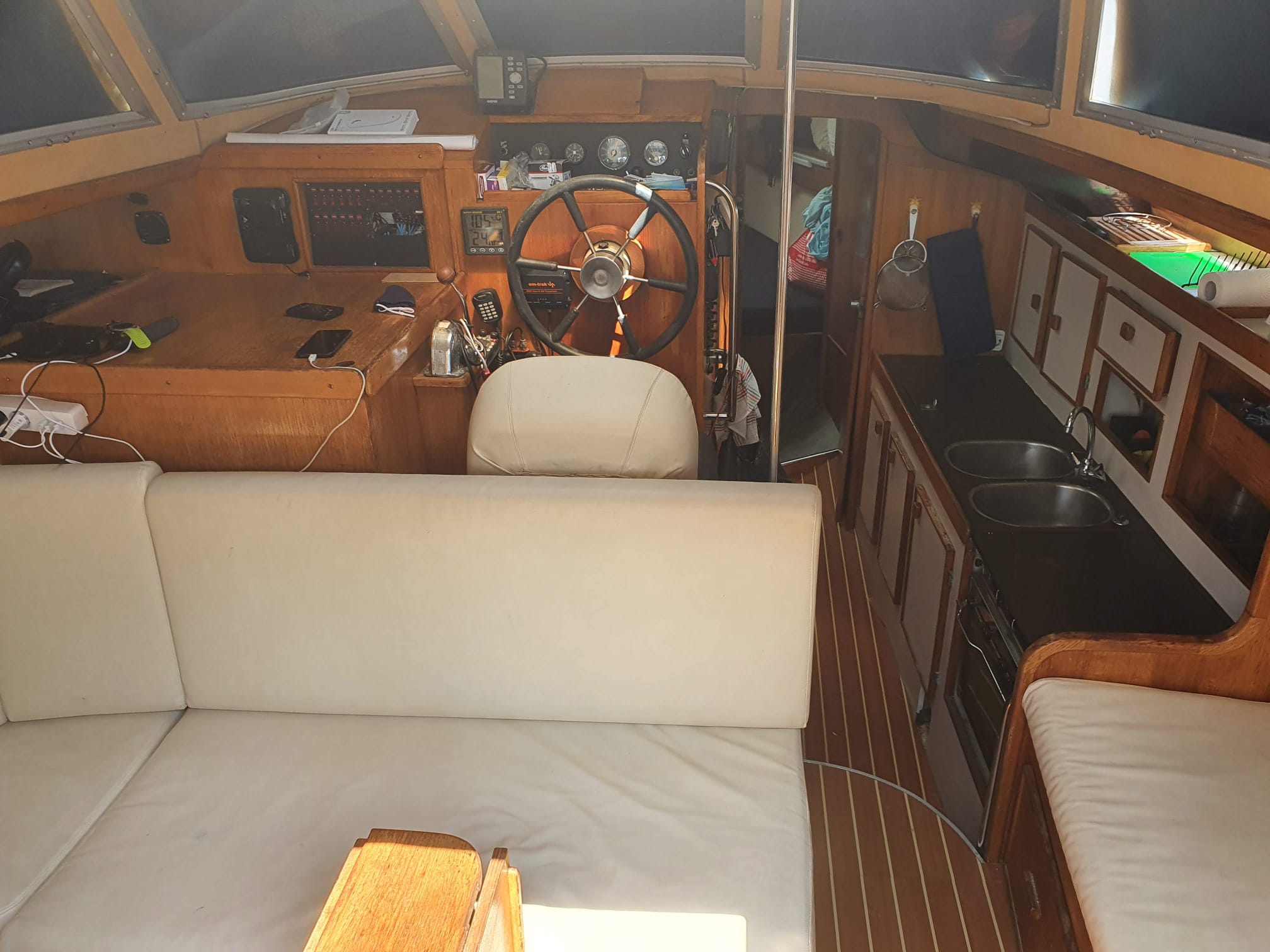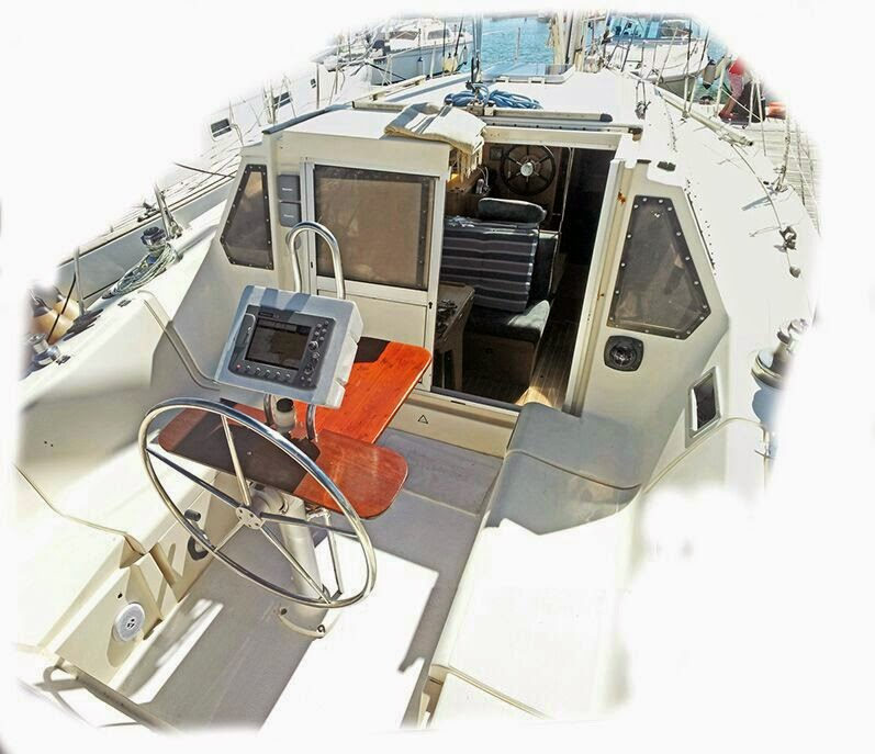 Velero listo para hacerse a la mar de inmediato. Muy agradable y con muchas aberturas, equipado con timonería interior y exterior, orza abatible, salón en cubierta que ofrece una visión panorámica de 360º, 2 camarotes dobles + 1 cama doble + 1 cama individual en el salón, cocina abierta totalmente equipada y plataforma de baño en popa que permite bajar al agua desde abordo.