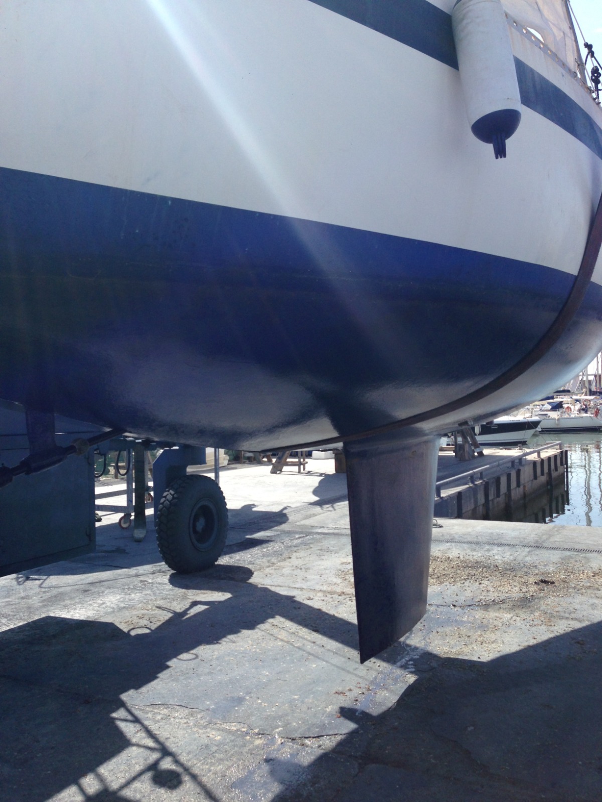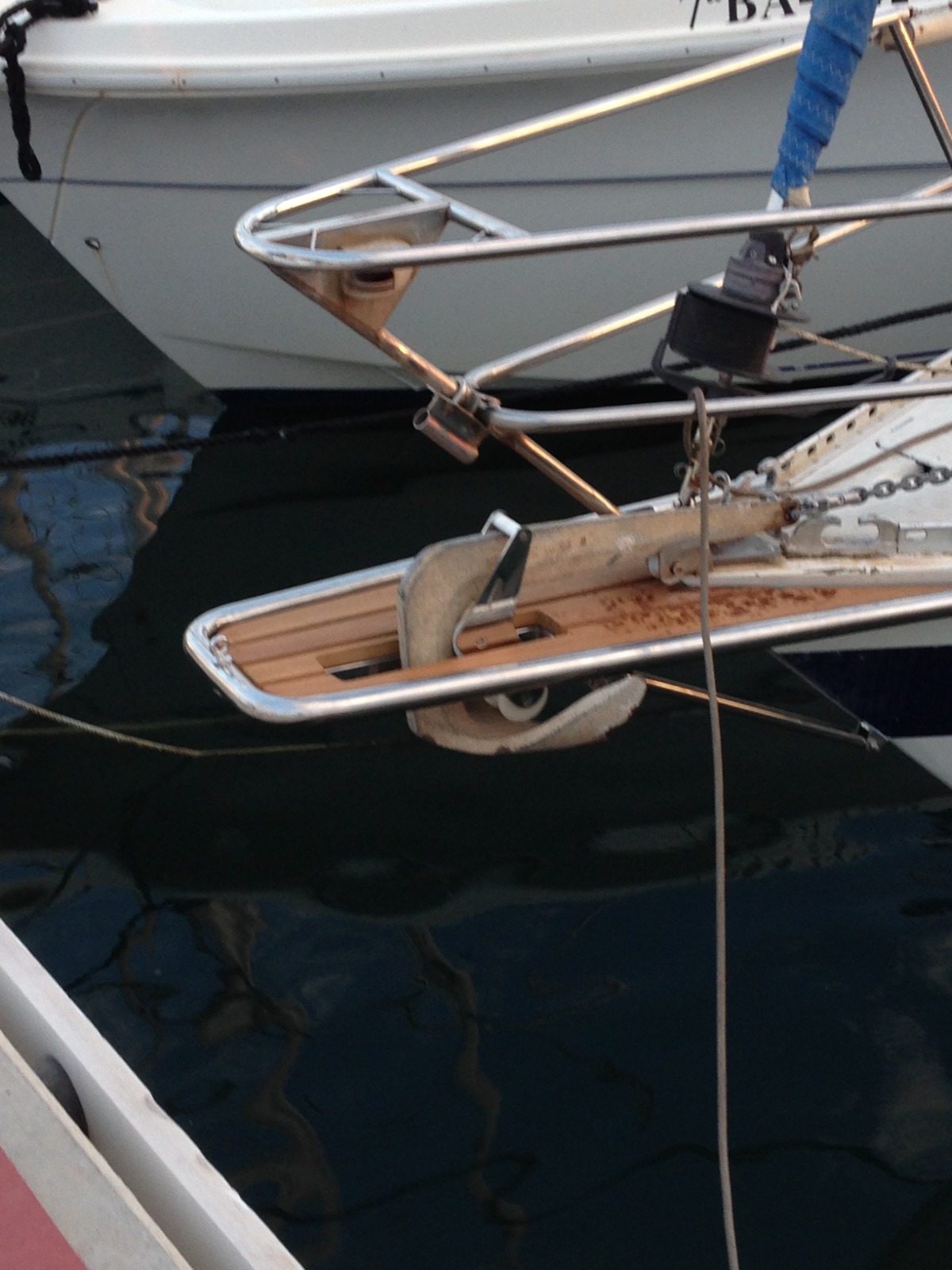 Botalón con estiba para ancla y herraje para espí